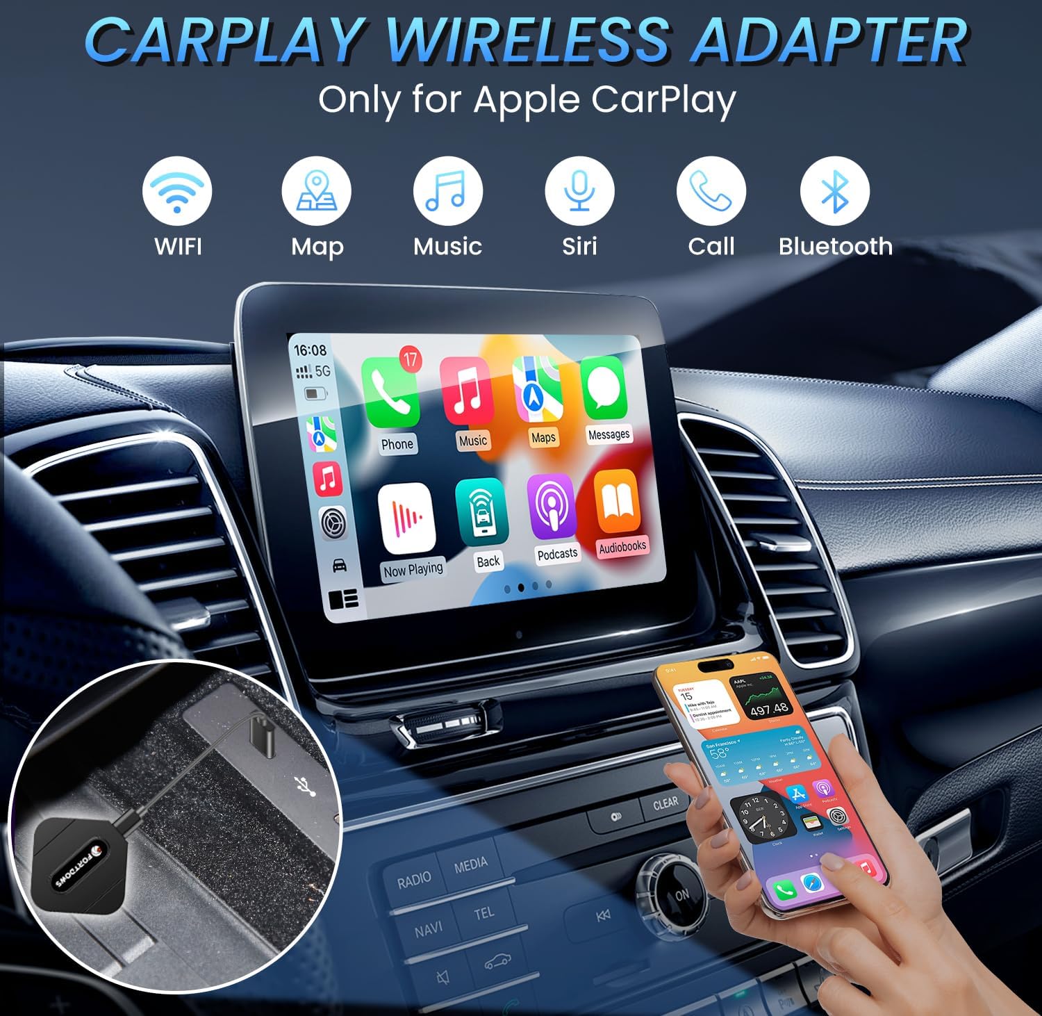 | Wireless CarPlay Adapter | Transform your CarPlay experience by eliminating cable use while retaining full functionality. |